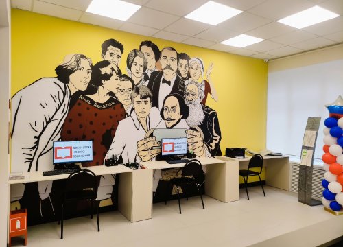 Интерьер зоны выполнен в светлых тонах, что создаёт уютную атмосферу для комфортной работы. Особенностью зоны служит декоративная стеновая панель с крупногабаритной фресковой печатью, на которой изображены известные писатели и поэты различных эпох в современной интерпретации.