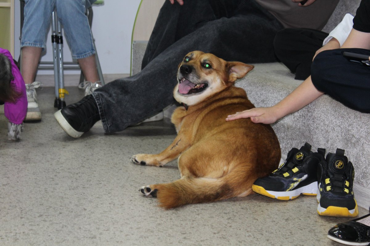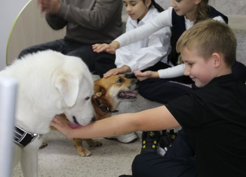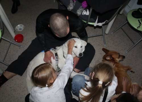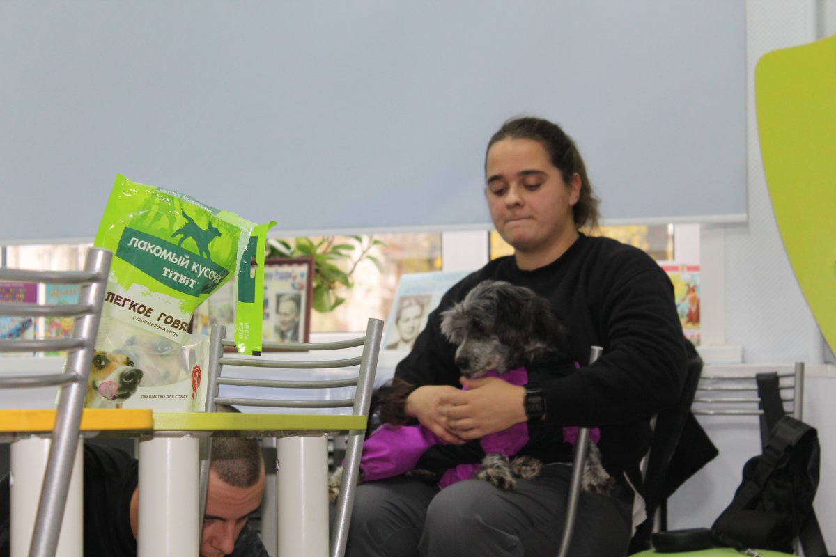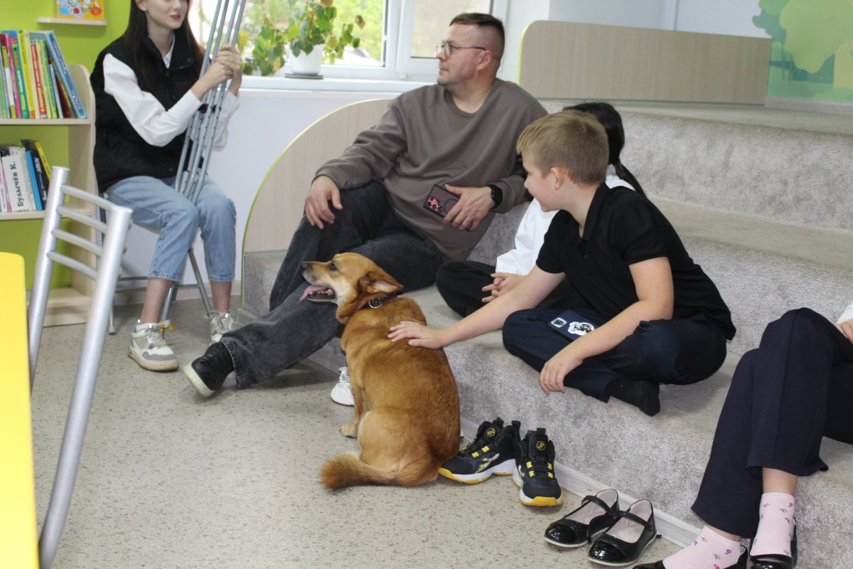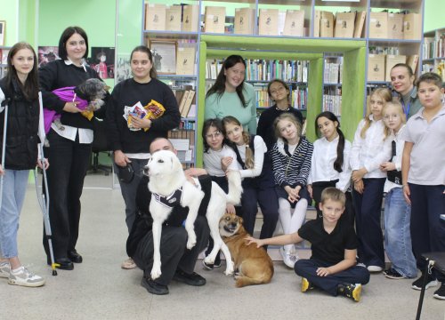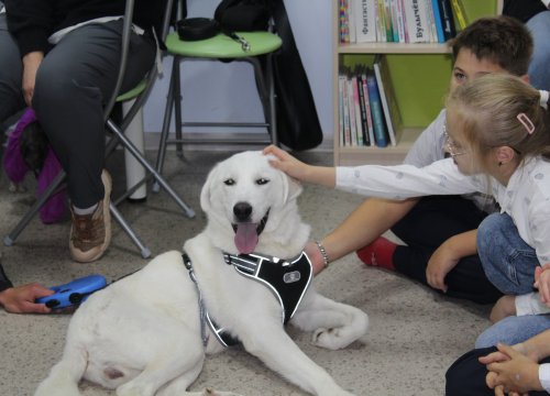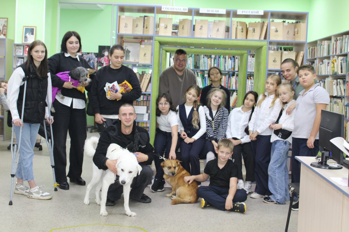 Хочется сказать лично от себя. Давно уже у нас в библиотеке не было таких встреч. Говорили все: и представители Центра, и школьники. Рассказывали много о себе, личного. Собаки сами подходили к детям, укладывались в ноги и подставляли мягкие бочка для глажки. Гладить можно было бесконечно!