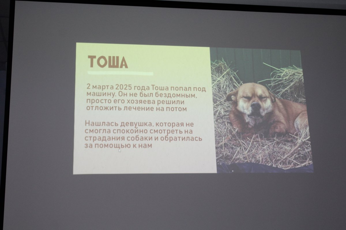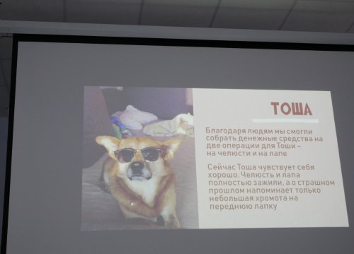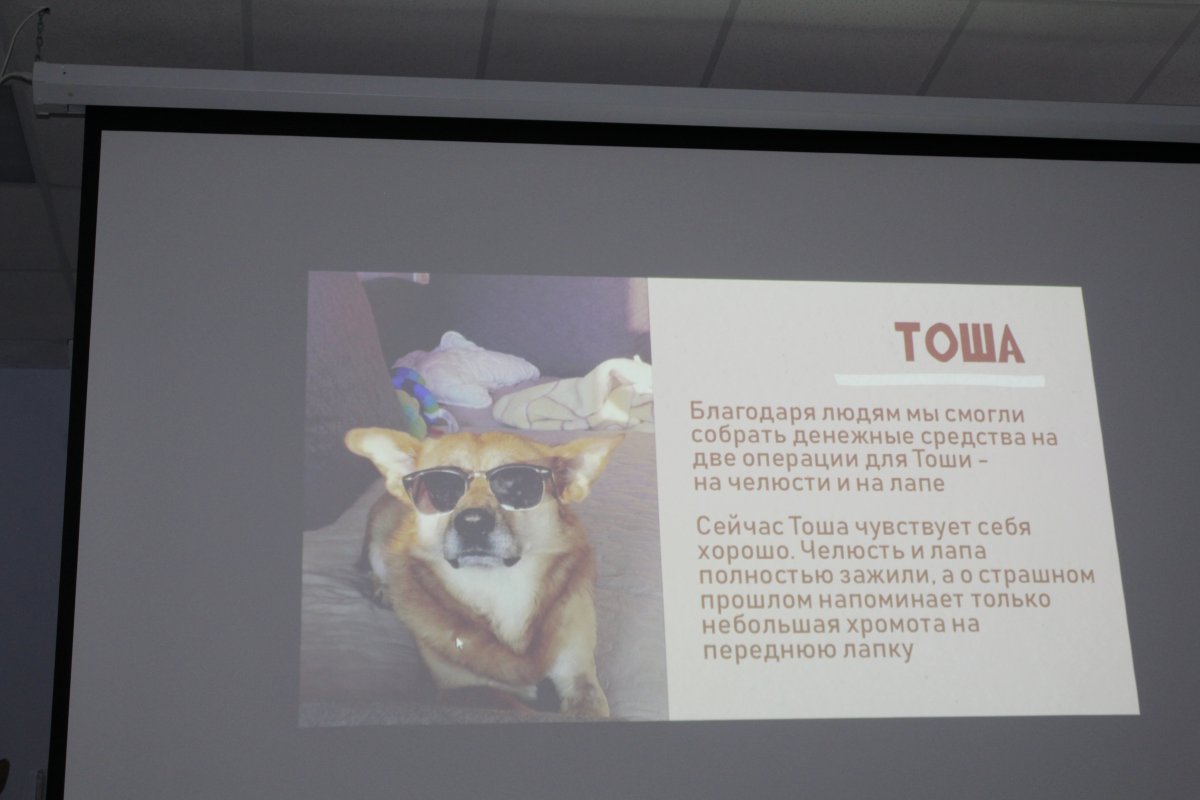 Всё это сопровождалось фотографиями территории «Территории» (такая вот тавтология!), видео, на котором можно было увидеть «воспитанников» центра и, конечно же, историями спасения Бусинки, Тоши и Адель. Из грустных, с заплаканными глазами собак они превратились в бесконечно ласковых, контактных, ухоженных питомцев!