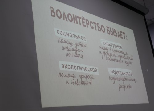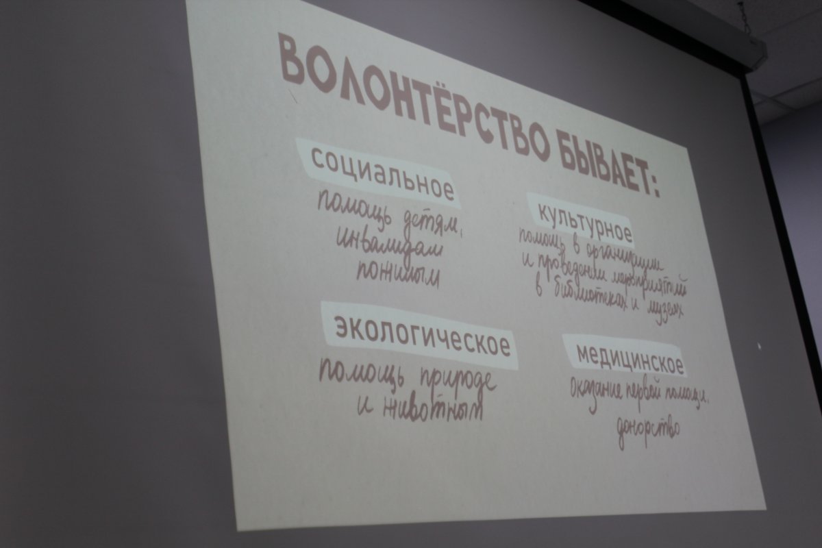 На встречу с волонтёрами, сотрудниками и руководителем центра пришли ребята из МАОУ СОШ №2. Четвероклассники даже не представляли, что помимо людей, рассказывающих им о важности и нужности работы волонтёра, придут еще и те, чьи истории реальные!