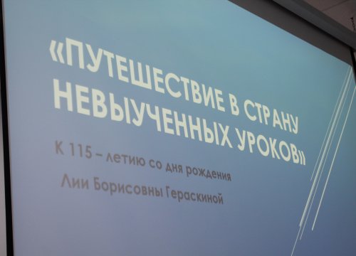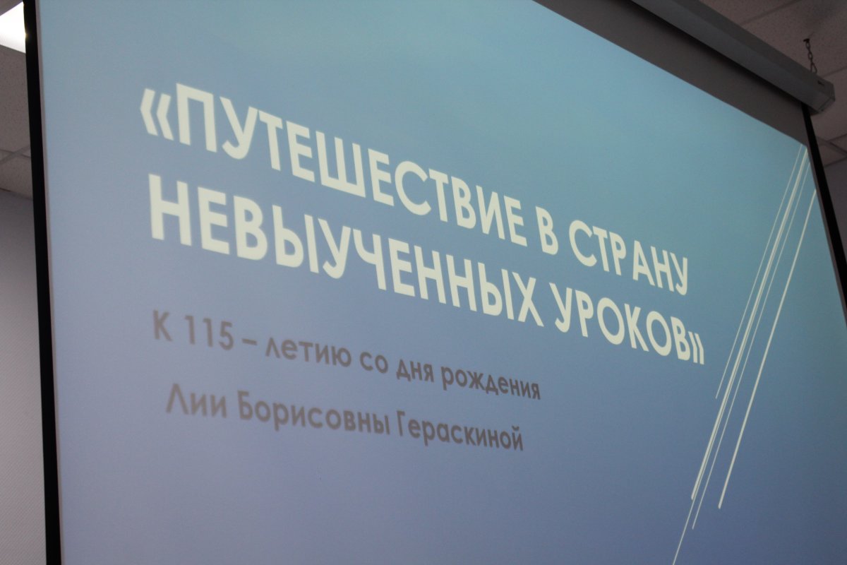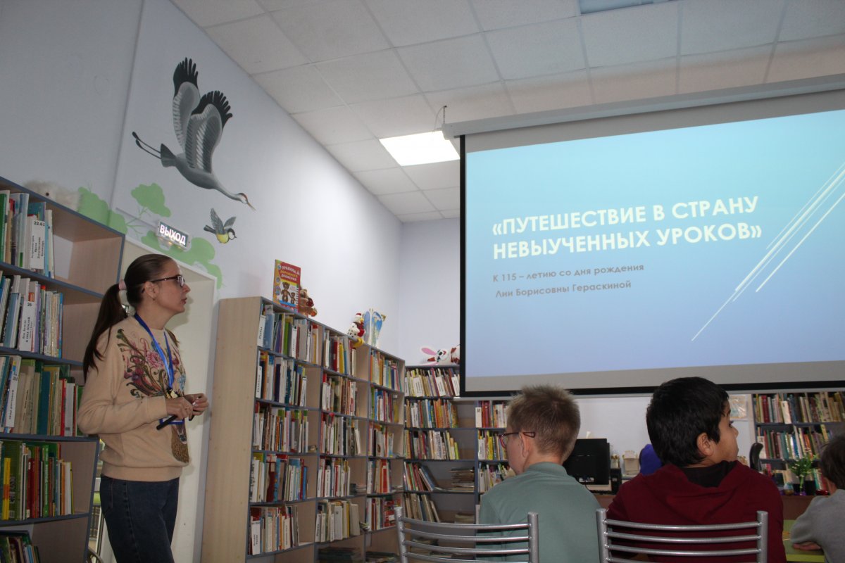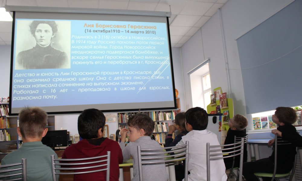 Игра-викторина «Талант добрый и весёлый», посвященная творчеству Гераскиной, прошла в рамках программы «Культура для школьников». Ученики 3 класса МАОУ СОШ №10 познакомились с биографией Лии Борисовны, узнали о её детстве и творчестве и, конечно же, вспомнили основные её произведения: «В стране невыученных уроков», «Мягкий характер», «Синий цветочек для мамы», «Домашний зоопарк».