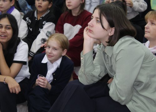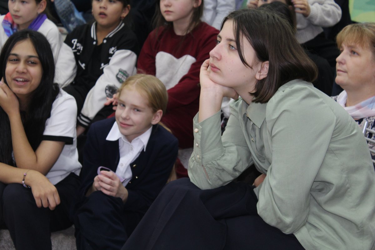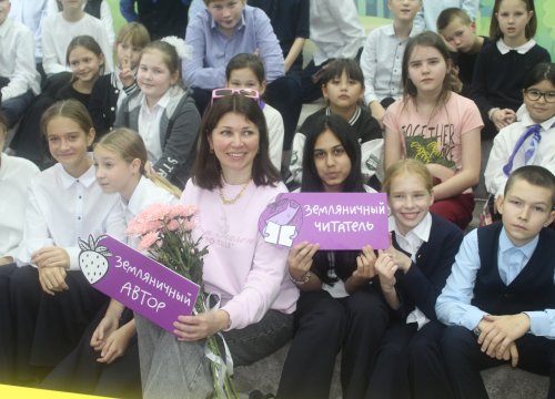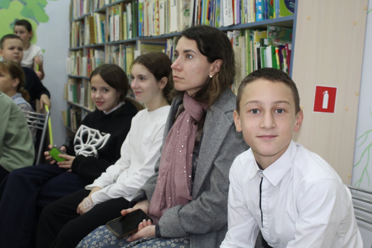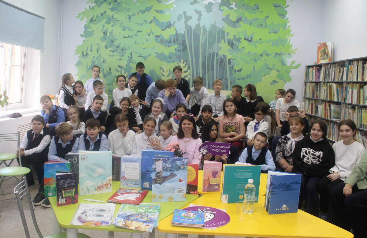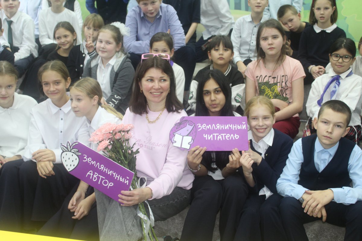 Внимание детей, приглашенных на встречу, она завоевала мгновенно. Книги автора, расставленные на столе, приковывали взгляд. И для младших школьников, пришедших на мероприятие, и для шестиклассников, которые прибыли к нам из гимназии «Гармония» – книги были на любой вкус и возраст!