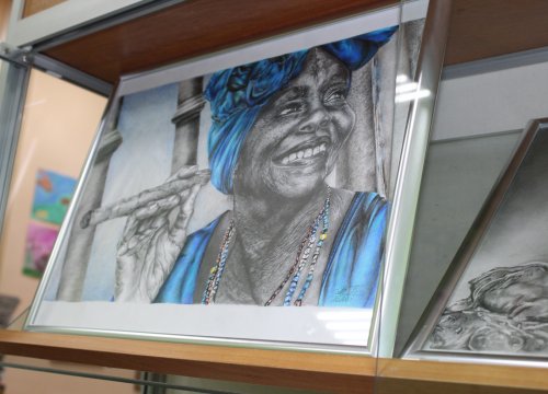 – Спасибо, мне очень приятно. Началось всё, конечно же, со школы. То стенгазету надо оформить, то какие-то демонстрационные материалы. Когда работала в детском саду, то и там рисование присутствовало: нарисовать плакаты, оформить уголок. А вот окончательно «случилось и связалось, и прочно вошло в мою жизнь» с выходом на пенсию. В один прекрасный день я пришла домой, увидела красивого щенка в интернете и перерисовала его. Сын сказал, что получилось красиво, и надо бы начать рисовать. Что я, собственно, и сделала! Работа эта с символичным названием «Начало» есть на выставке, кстати! Я – стопроцентная самоучка. С удовольствием учусь, смотрю видео-уроки.