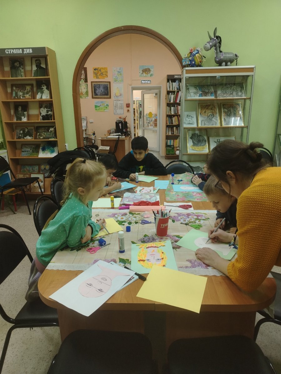 Сотрудники абонементов решили провести для всех желающих мастер-класс «Мамин портрет», используя необычные техники!