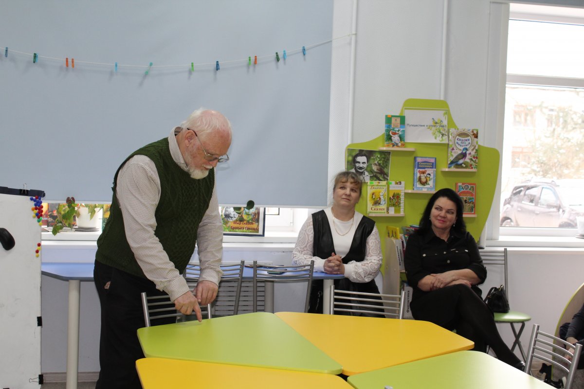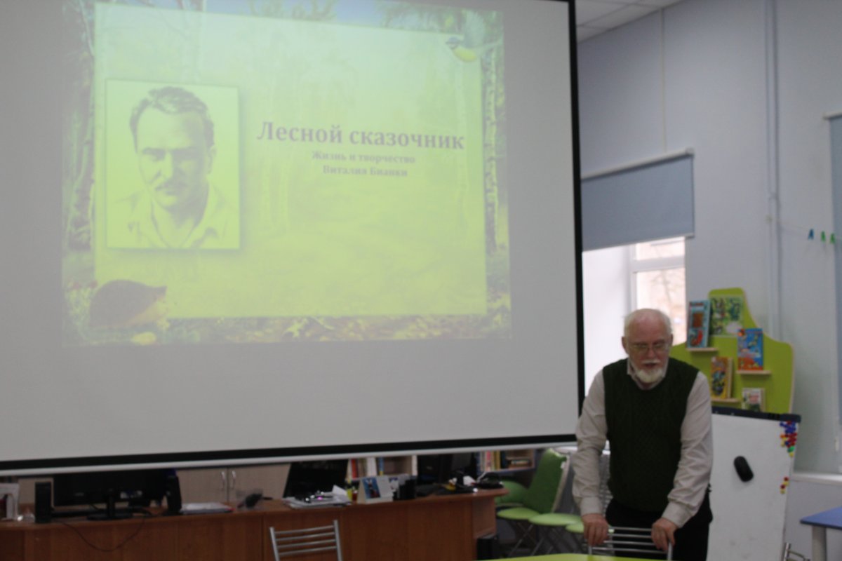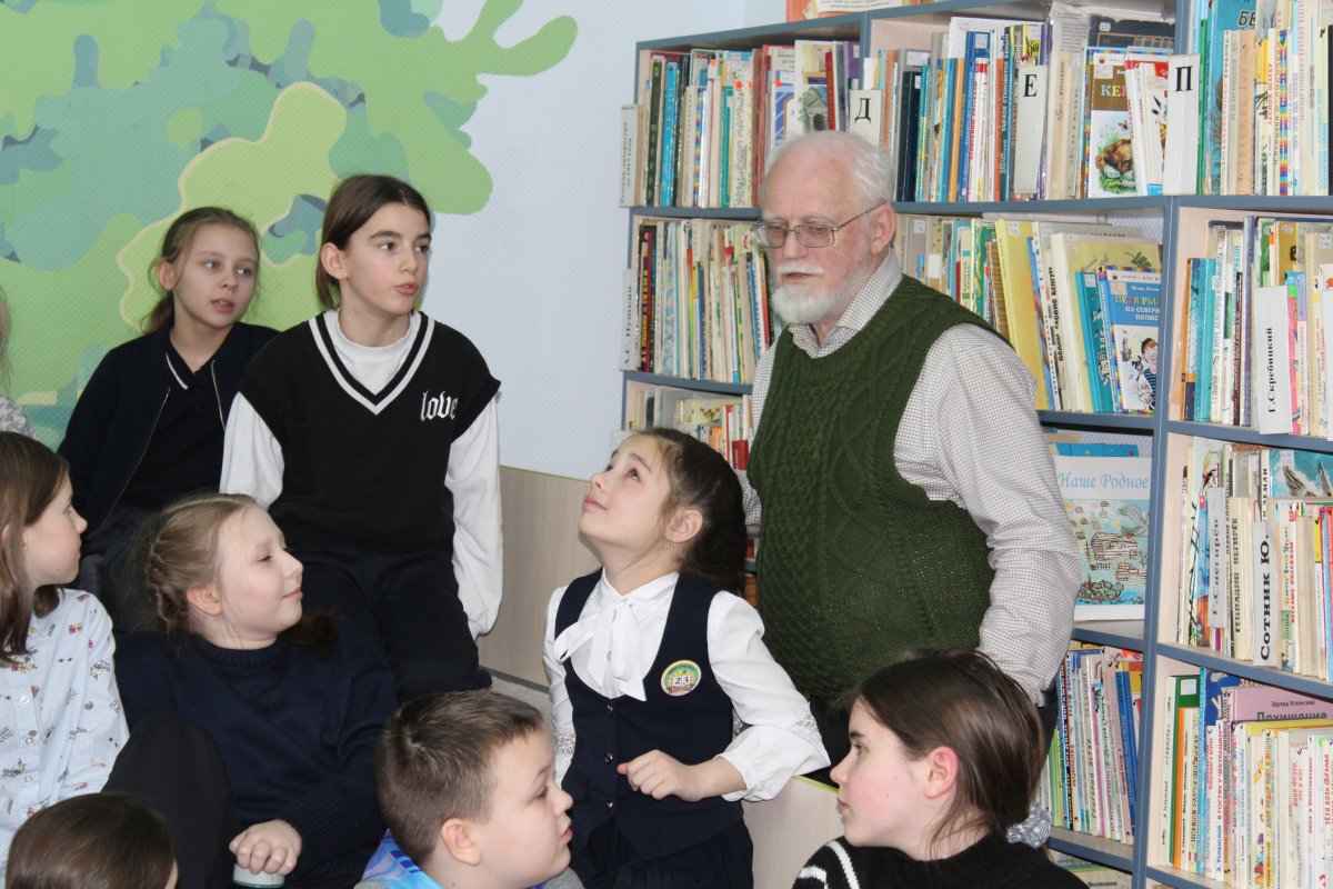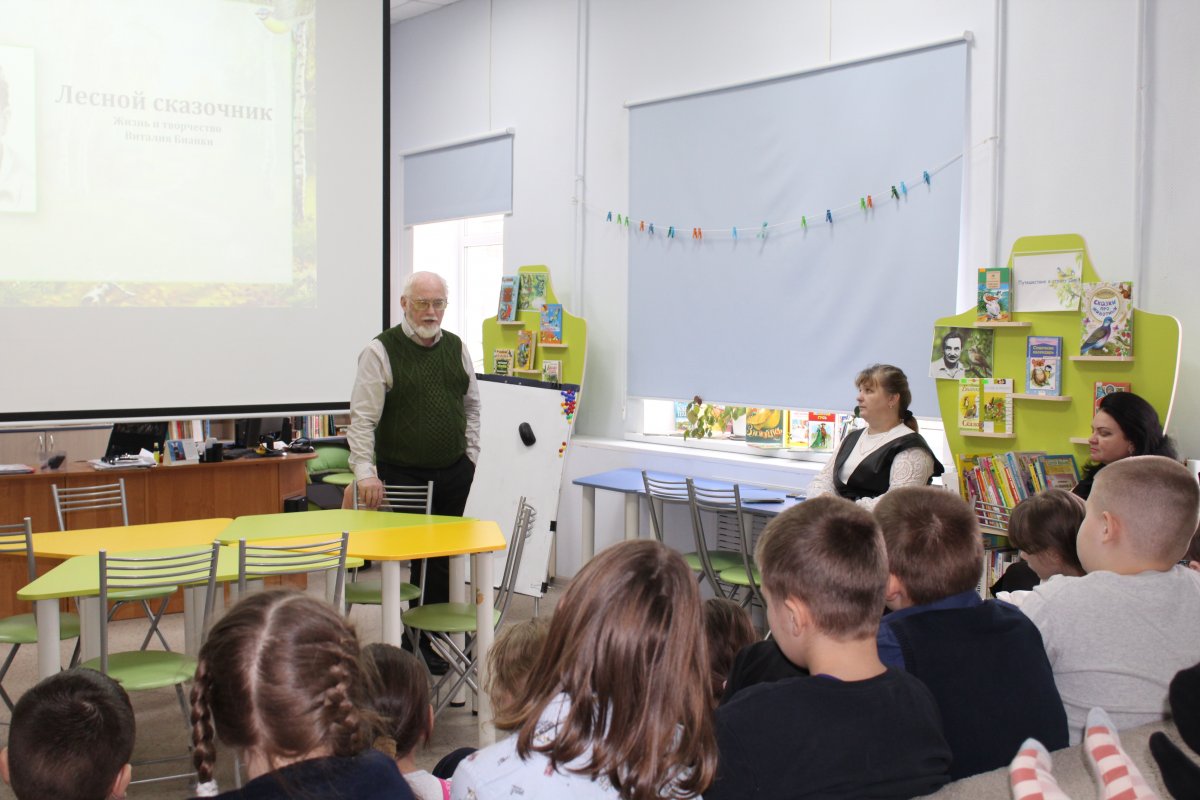 13 февраля в модельной детской библиотеке прошла встреча с Александром Михайловичем Бианки, внуком писателя Виталия Бианки.