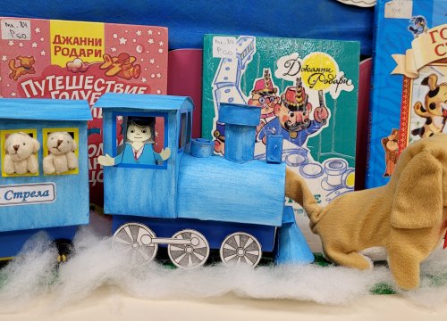 Юные читатели с большим интересом рассматривают поезд «Голубая стрела» с пассажирами. Они вспоминают, из какого произведения этот удивительный состав и как звали собачку, которая указывала дорогу путешественникам.