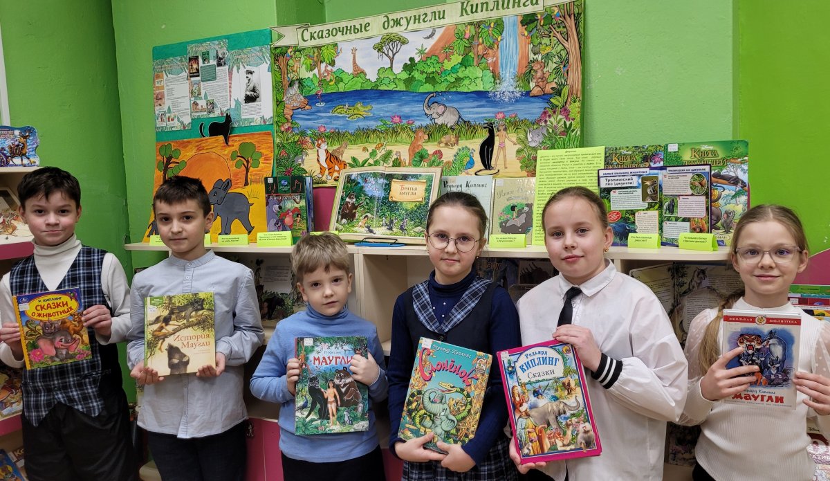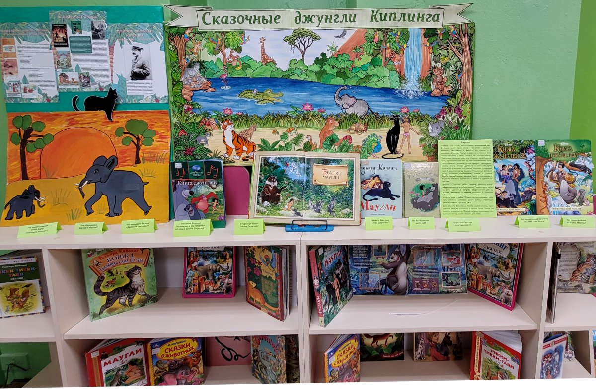 В Центре детской книги на младшем абонементе оформлена выставка-опасная прогулка «Сказочные джунгли Киплинга» к 160-летию со дня рождения английского писателя Д.Р. Киплинга. Его произведения привлекают захватывающим сюжетом, необычными героями и удивительным миром природы.