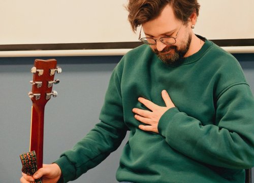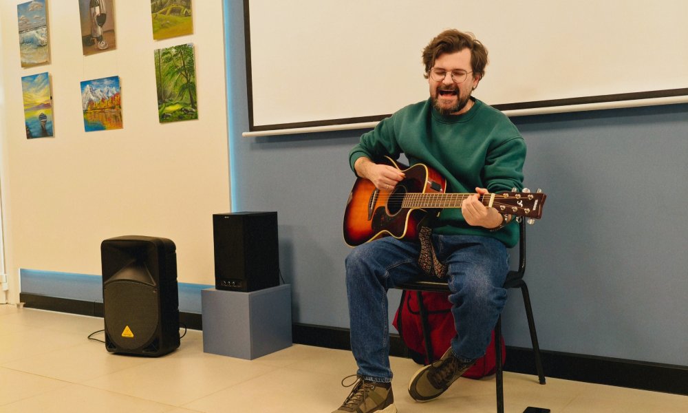 22 ноября в Центральной городской библиотеке имени Д. М. Балашова прошёл творческий вечер новгородского поэта и музыканта Степана Дмитриева. Новгородцам он больше известен как рок-персона, лидер группы «Чёрная птица». Но в библиотеке он выступил один — читал стихи, пел свои песни под гитару. Без сцены, без спецэффектов — просто голос, слова и искренние эмоции.