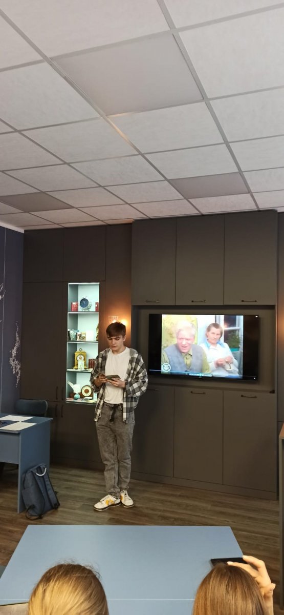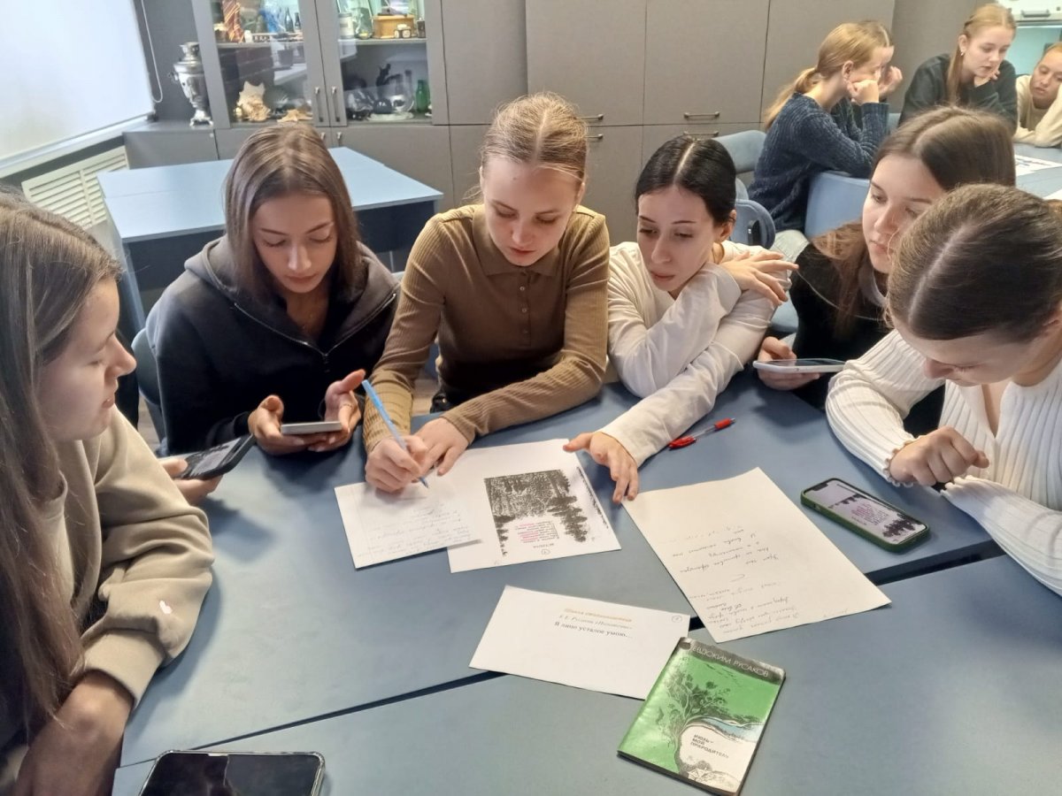 Занятие «В мои глаза глядится Русь» было посвящено творчеству писателя земли Новгородской – Евдокима Русакова. Ребята узнали о нелёгкой судьбе писателя, а также о его глубокой любви к своей земле. Знакомство с творчеством Евдокима Русакова прошло в интерактивной форме: студенты участвовали в захватывающем литературном состязании под названием «ПроЧитай». Этот турнир – возможность для молодых людей не только расширить свои познания о творчестве Русакова, но и раскрыть собственный поэтический потенциал. В течение семи раундов 2 команды декламировали стихотворения, придумывали рифмы, читали перевёрнутый текст.