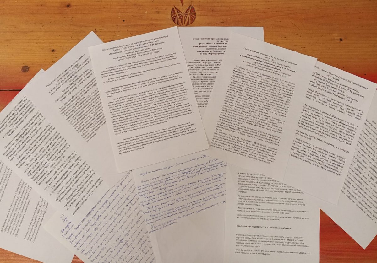 Центр истории и краеведения центральной городской библиотеки им. Д.М. Балашова совместно с преподавателем литературы Куликер Галиной Михайловной организовал занятия в первом семестре 2025 года для студентов Новгородского областного колледжа искусств им. С.В. Рахманинова в рамках изучения раздела «Поэты и писатели земли Новгородской» (дисциплина Отечественная литература).