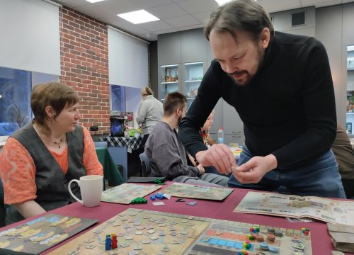 30 января уже состоялась первая игротека с «GaGa.ru». Участники клуба успели поиграть пока что лишь в четыре игры: «Орлеан», «Улица шпионов», «Шёпот леса» и «Волшебные ключи». Так что впереди ещё много открытий и увлекательных приключений на игровом столе!