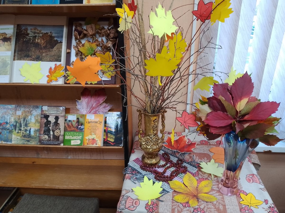 Для собравшихся была подготовлена выставка на осеннюю тему, где предоставлены книги, журналы, иллюстрации знаменитых художников.