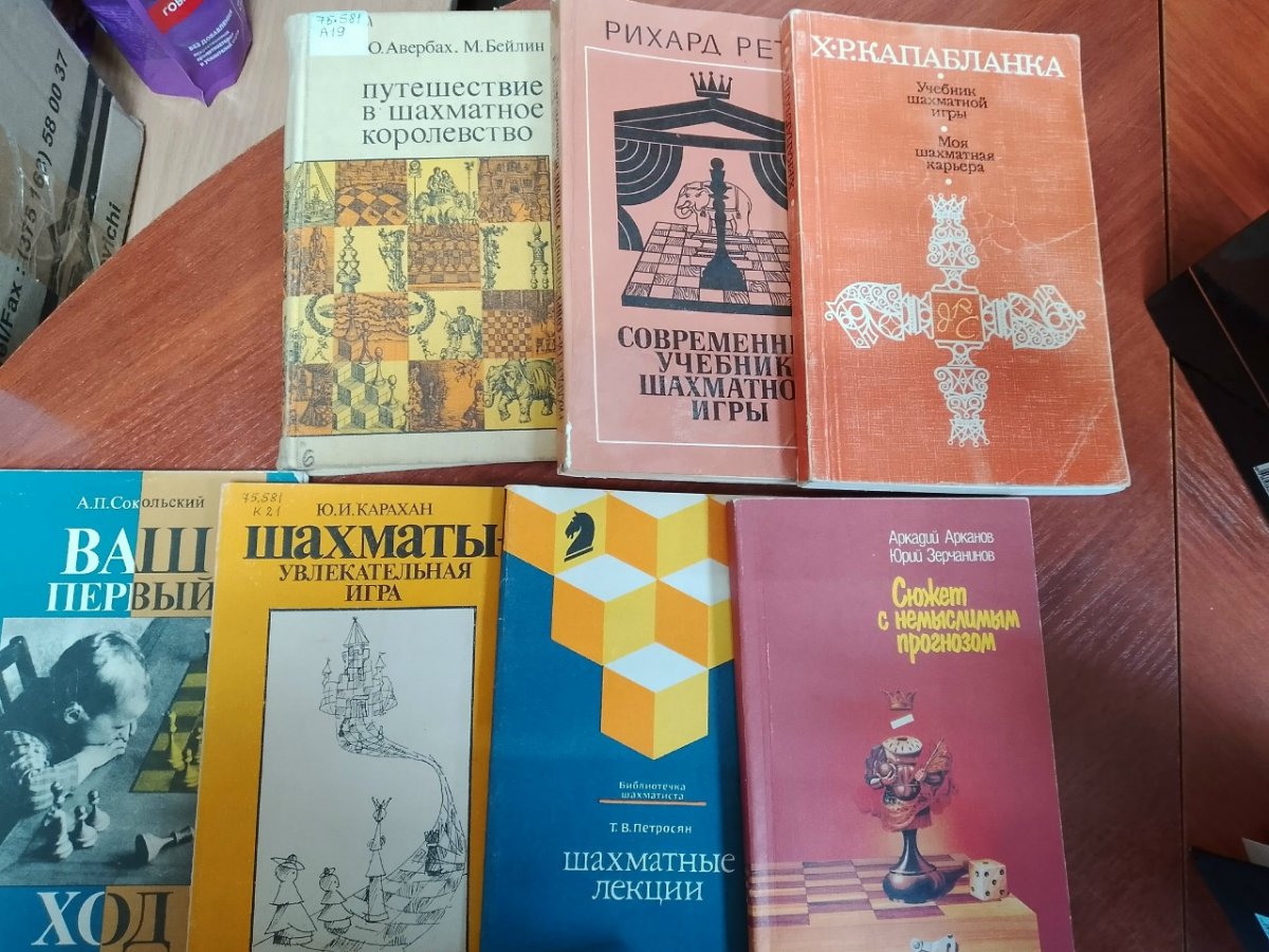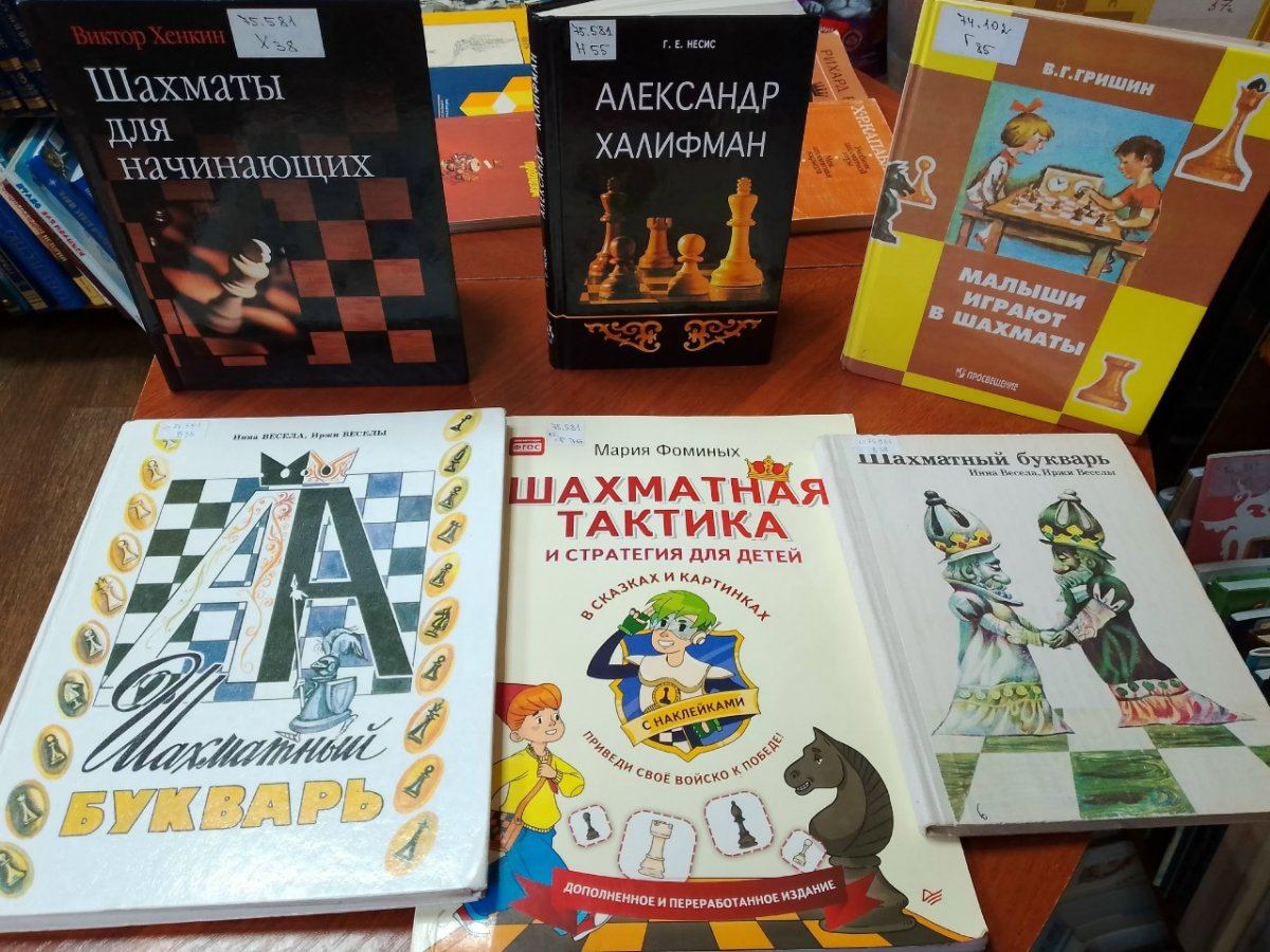 Для ребят была организована книжная выставка «Всё о шахматах». На ней были представлены книги: В.Г. Гришин «Малыши играют в шахматы», И. Весела «Шахматный букварь», В. Хенкин «Шахматы для начинающих» и другие. Все эти книги вводят читателей в волшебный мир шахмат, знакомят с основами шахматной игры.