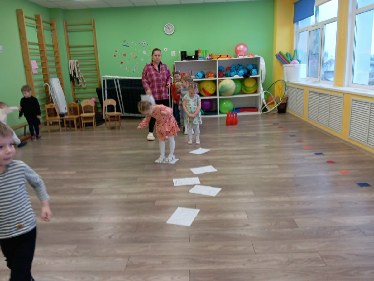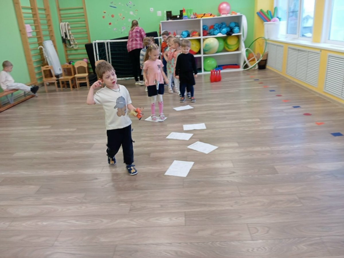 Дети принимали участие в веселой зарядке, спортивных играх и конкурсах: «Как пингвин», «Море волнуется раз», «Самый меткий», «Прыгаем по кочкам».