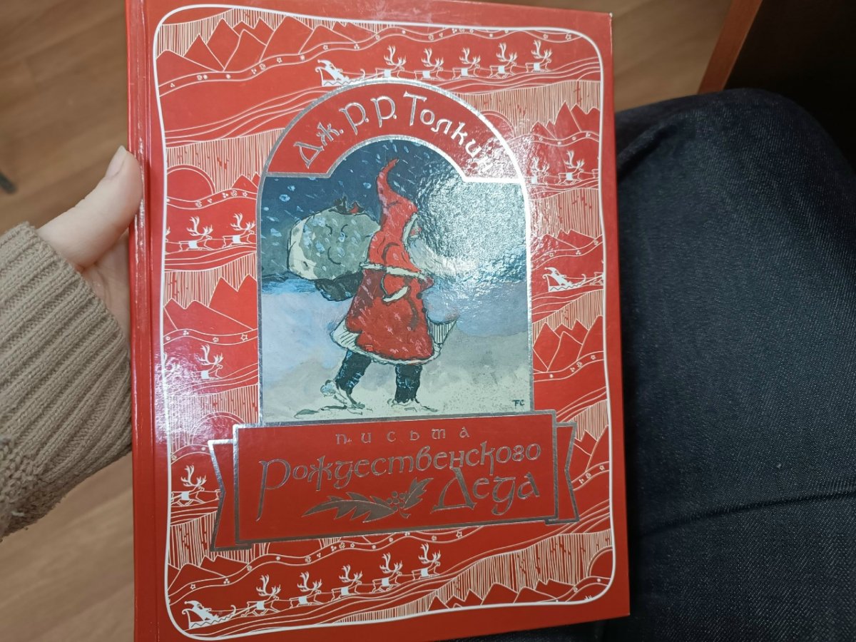 Темой встречи стало обсуждение новогодних и рождественских историй – каждый подобрал то, что пришлось ему по душе, и поделился этим с остальными. Одна из читательниц принесла книгу, ставшую традиционной для ее семьи в новогодние праздники. «Письма Рождественского деда» – сборник сказочных писем, написанный Дж.Р.Р. Толкиным для своих детей. Это добрая, пропитанная праздничным настроением, книга. Письма дополнены уютными иллюстрациями, созданными самим автором.