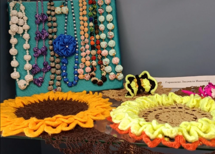 В центральной городской библиотеке им. Д.М. Балашова 2 февраля 2026 года открылась выставка «Умелые руки не знают скуки» из цикла «Времена